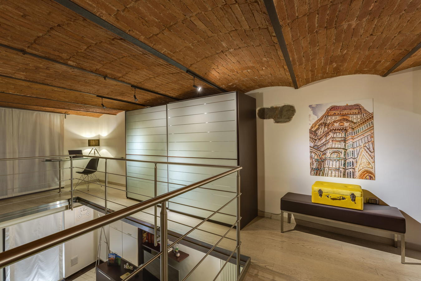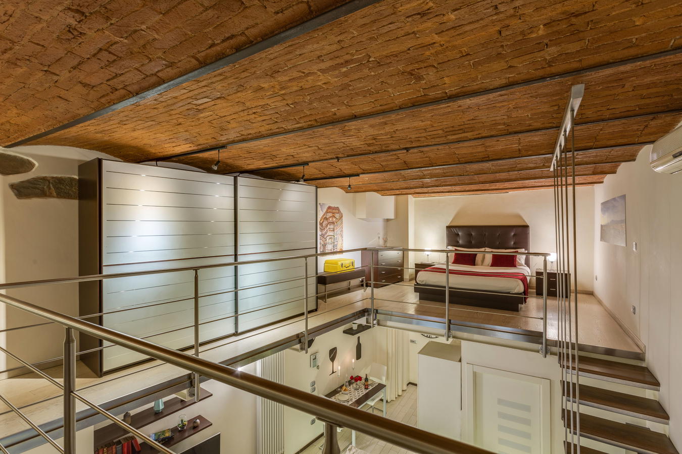 Gli spazi aperti tipici del loft conferiscono agli ambienti un senso di ampiezza e ariosità, oltre a darti la possibilità di apprezzare i soffitti a volta in ogni punto tu ti trovi dell'appartamento. Sul soppalco si trova il letto matrimoniale, con un bel guardaroba che ti consentirà di organizzare al meglio le tue cose durante il soggiorno.