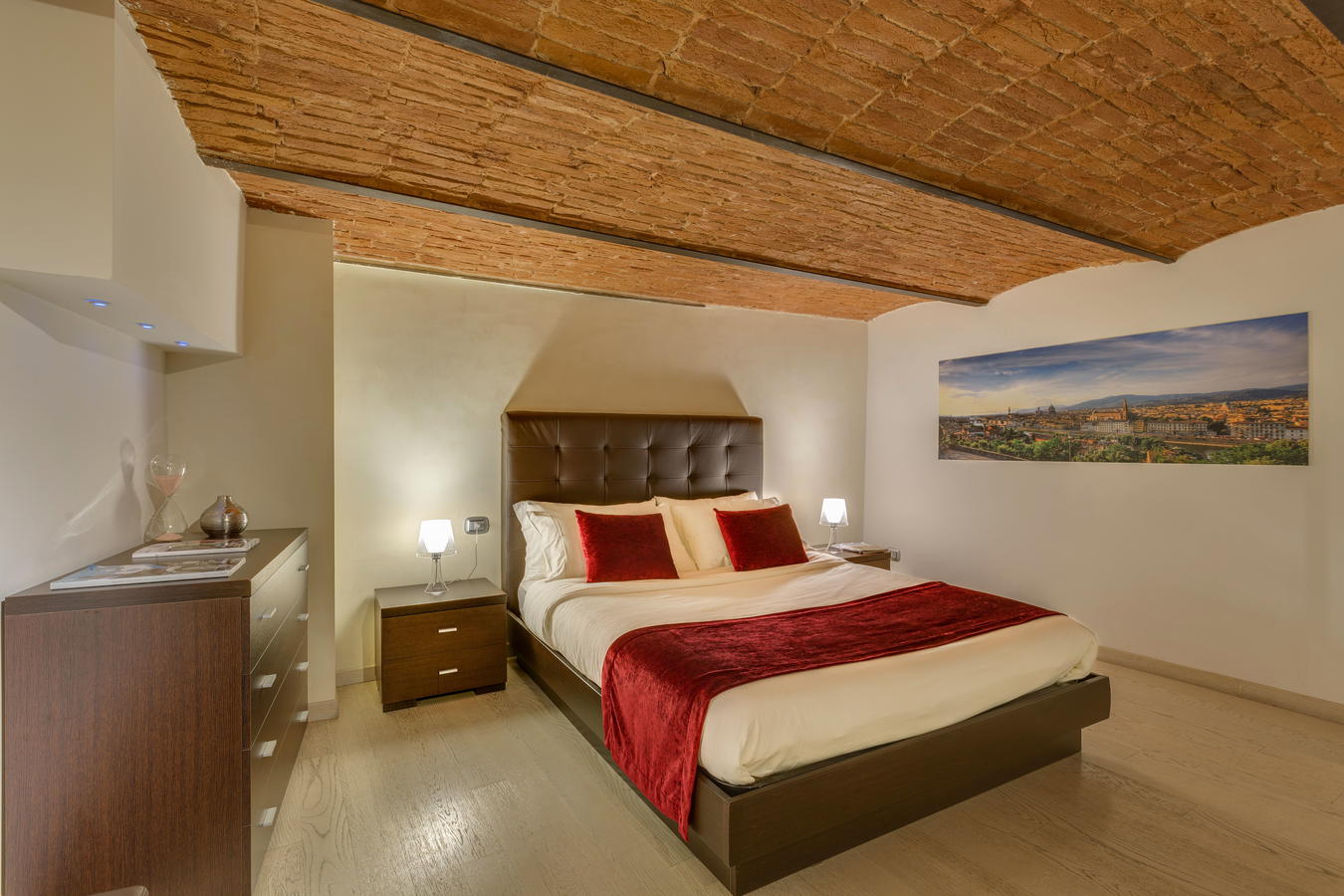 Il design in stile contemporaneo accentua la stupenda architettura tipicamente toscana, di cui si riconoscono alcuni inconfondibili dettagli, come la pietra a vista e l'uso del mattone.