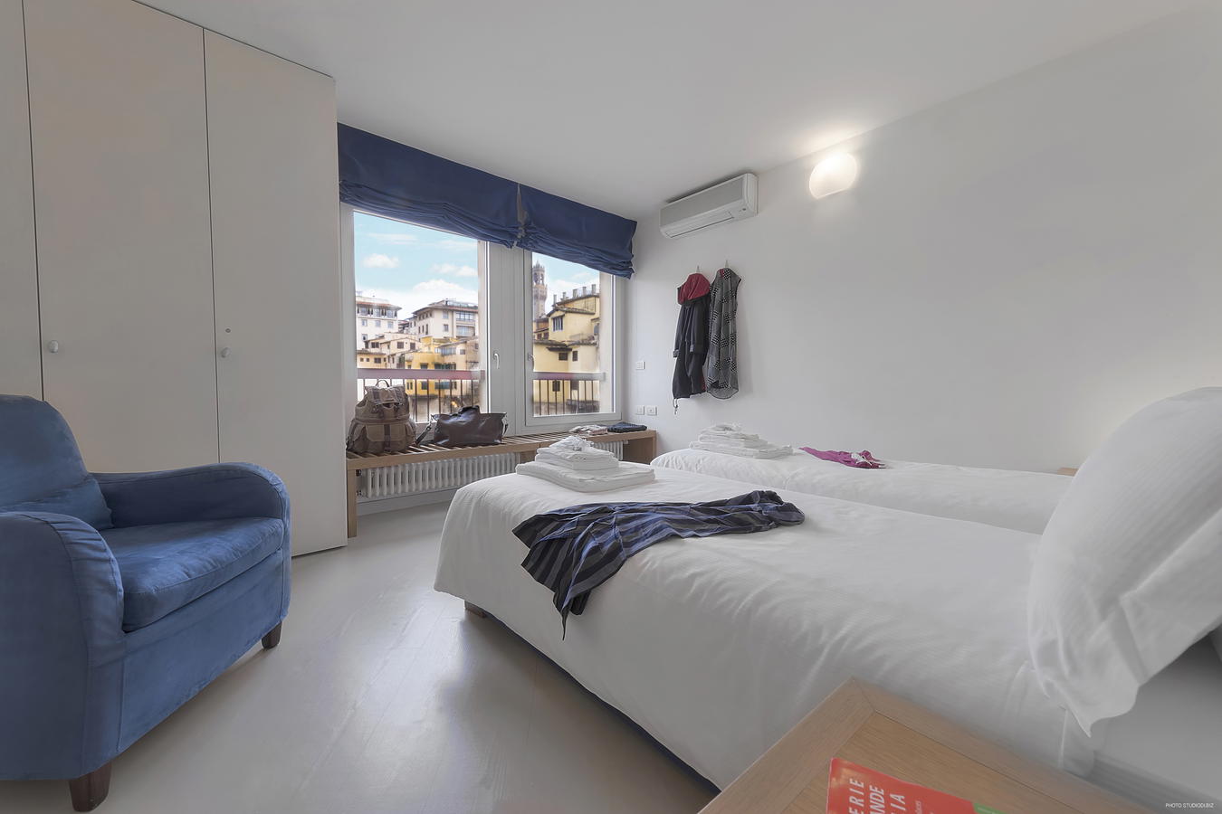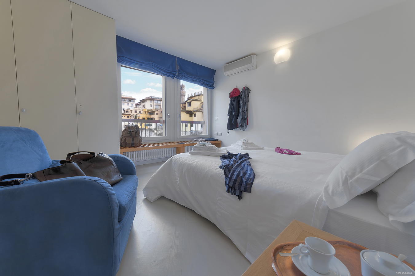 Ogni volta che ti affaccerai dalla finestra, potrai ammirare due dei luoghisimbolo della città , Ponte Vecchio ed i famosi tetti rossi di Firenze