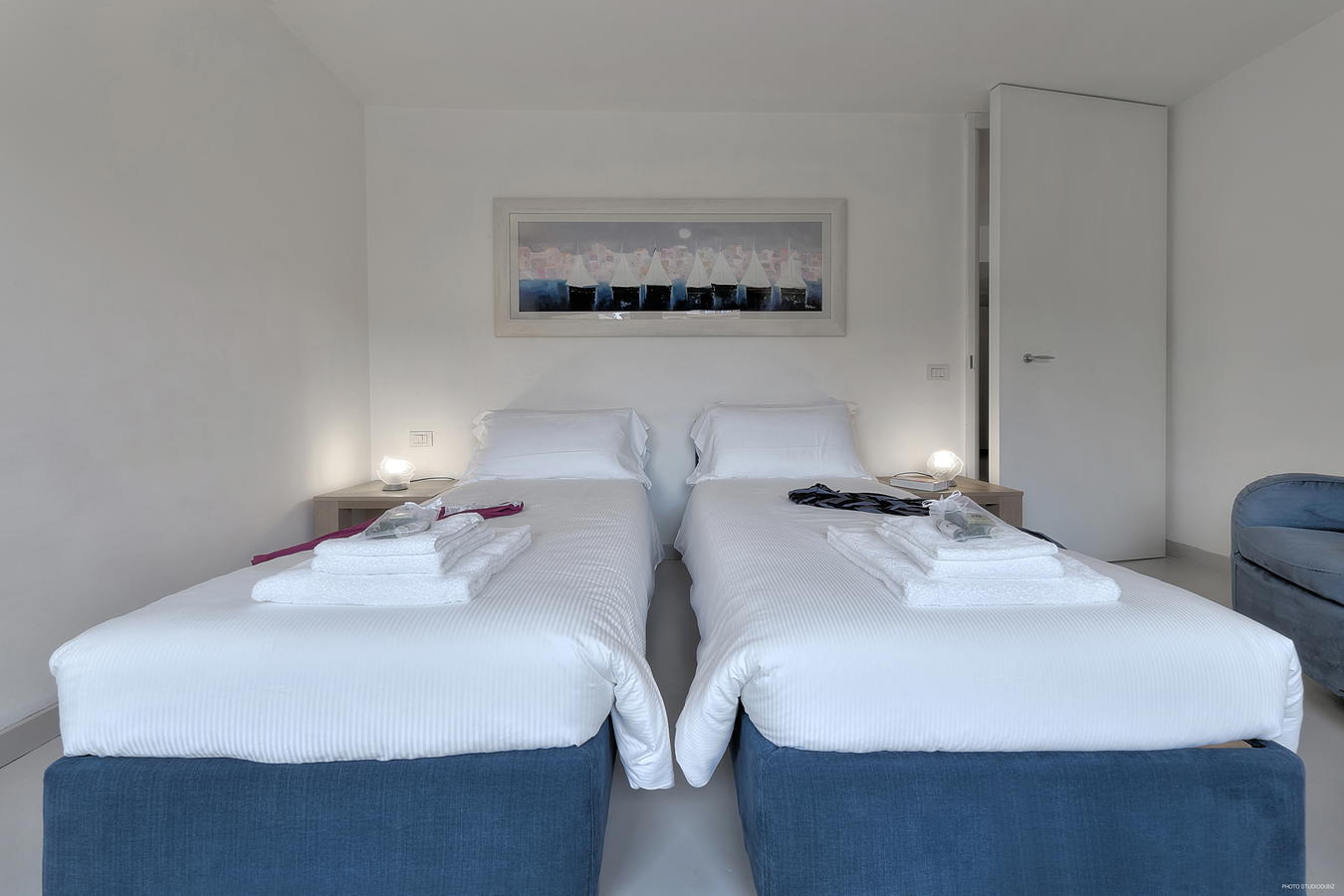 La camera principale è estremamente spaziosa: è dotata di un letto extra large, un armadio ed un bagno con doccia. La seconda camera è composta da due lettini singoli, che su richiesta possono essere uniti a formarne uno matrimoniale, un armadio ed un bagno con doccia.