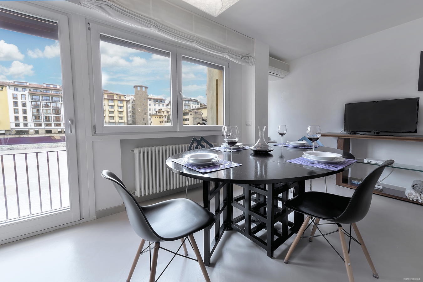 L'Old Bridge Apartment vanta un'ampia superficie: circa 100 metri quadrati di spazio dallo stile minimal e funzionale, ma al tempo stesso estremamente elegante e raffinato, in posizione esclusiva lungo l'Arno. E' composto da due camere matrimoniali, ognuna dotata del proprio bagno, soluzione perfetta per coppie o gruppi fino a 4 persone.