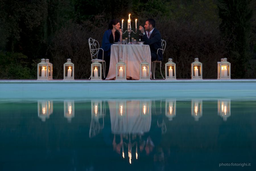Una spettacolare piscina circondata da gazebo con terrazza solare dove poter organizzare romantiche cene a lume di candela