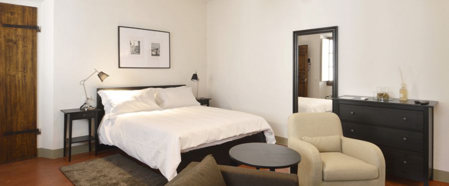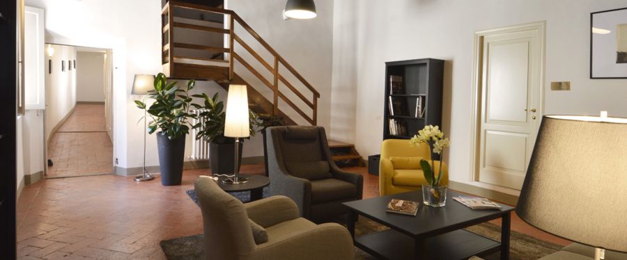 All'ultimo piano si trova la perla della residenza, una suite panoramica, a cui si aggiungono una camera executive, due superior e due standard, tutte arredate in modo minimalista nelle varie tonalità del bianco, grigio e nero. Non appena ci si allontana dalla trafficata strada che corre davanti a Palazzo Pitti per dirigersi verso il palazzo, si viene completamente avvolti da un'atmosfera di pace, tranquillità e silenzio.