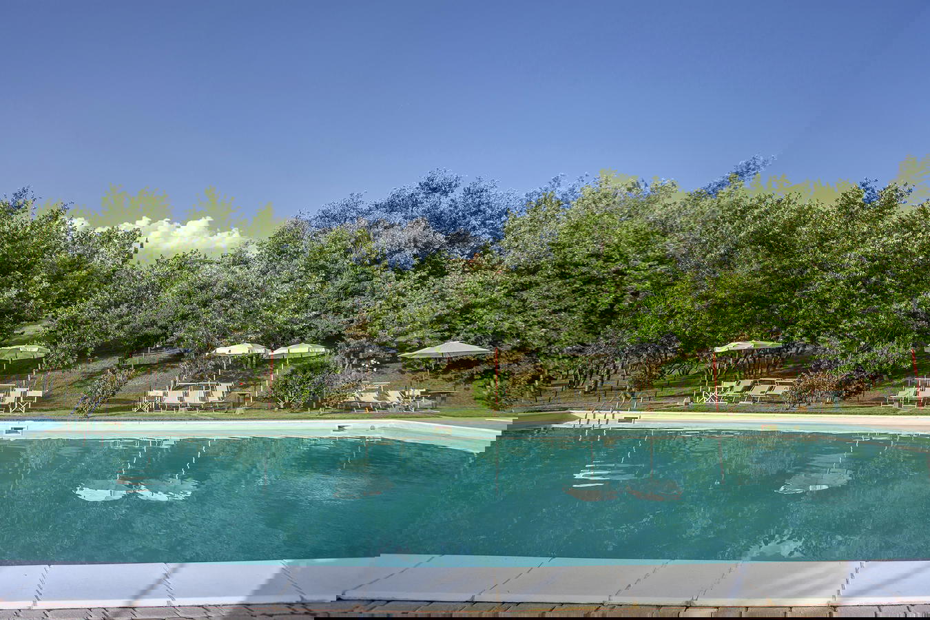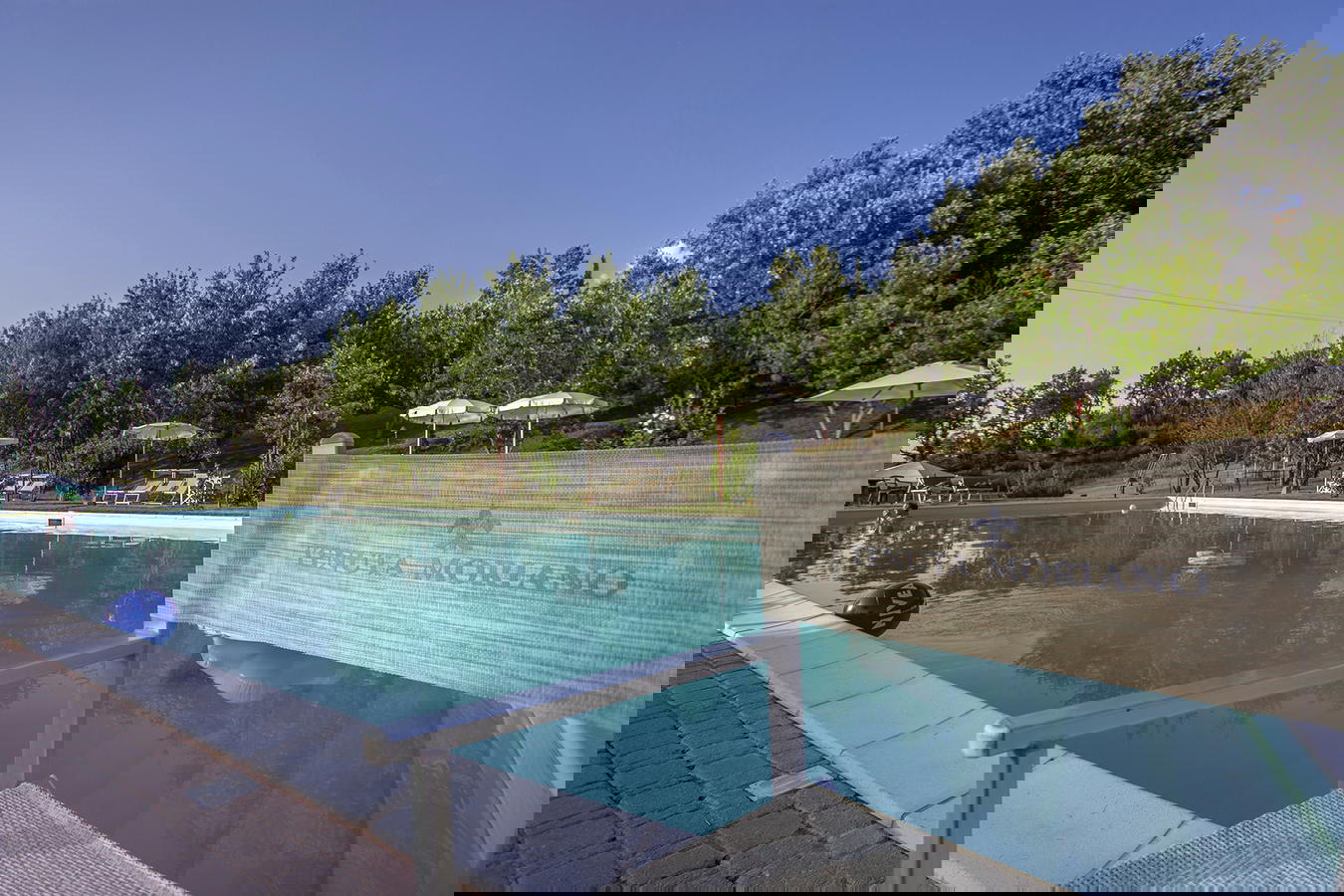 Dagli appartamenti, si accede facilmente all'area piscina, che gode di un'ampia piscina 9x20 mt e di una piscina per bambini.
