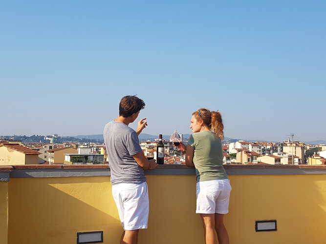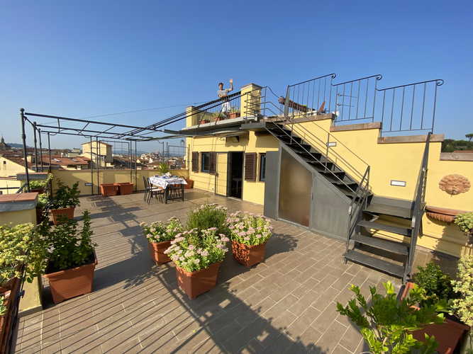 Immaginati durante il tuo tanto sognato soggiorno a Firenze, in un appartamento privato ed esclusivo che non devi condividere con nessuno, dotato di due spettacolari terrazze con vista sull'intera città, compresi il Duomo, Palazzo Vecchio ed il profilo unico di una città che brilla per le sue meraviglie! Ecco cosa ti aspetta se decidi di soggiornare presso l'appartamento Terrazza con Vista!