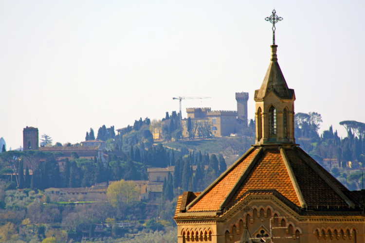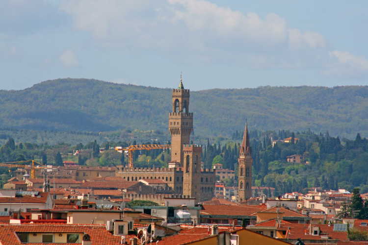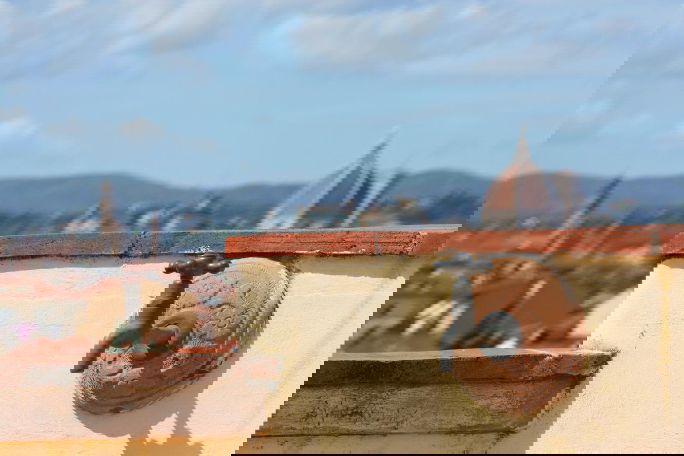 La prima terrazza è la più grande, con i suoi 60 metri quadrati circa di superficie ed accesso diretto dal soggiorno. Puoi fare colazione, pranzare e cenare ammirando al contempo la Cupola del Brunelleschi, il campanile di Palazzo Vecchio, la città etrusca di Fiesole, il Castello di Vincigliata e le sinuose colline del Chianti che si estendono tutte intorno.