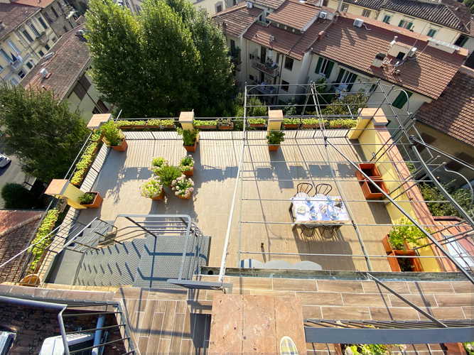 La seconda terrazza, circa 30 metri quadrati, è situata sopra la prima e collegata ad essa tramite un'ampia scalinata: la vista mozzafiato da mille ed una notte che offrono entrambe sulle meraviglie della città rinascimentale ti lascerà senza parole!