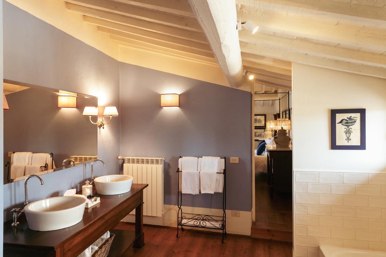 Cominciamo innanzitutto dagli alloggi: la villa offre sei suite spaziose e luminose al primo piano della villa, ciascuna con il proprio ampio bagno, e altre 6 suite nelle antiche scuderie recentemente inaugurate dopo anni di ristrutturazione, tutte con zona soggiorno. In ciascuna delle suite troverai la tua piccola cantina con i vini Dianella... apri una bottiglia e gustane un bicchiere mentre ti rilassi nella vasca da bagno o sorseggia un bicchiere all'aperto in giardino o in terrazza guardando il tramonto.