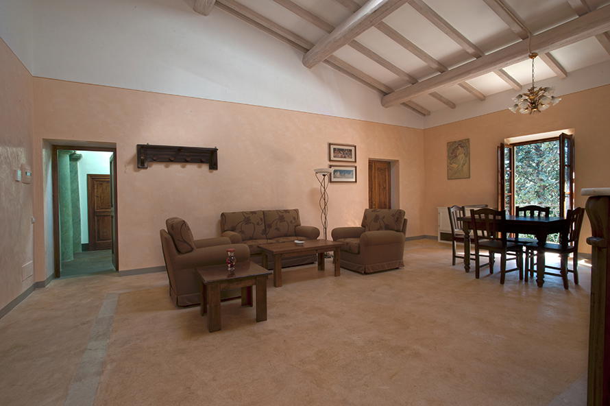 Ogni appartamento è dotato di due camere matrimoniali - in una delle quali vi è un divano letto - ed un ampio soggiorno con divano, TV e sala pranzo. Nonostante non siano provvisti di cucina attrezzata, entrambi hanno accesso ad una stanza comune con frigorifero (uno per appartamento), lavatrice, forno a microonde, macchina per il caffé e bollitore per preparare il tè. Ma il pezzo forte è sicuramente la vasca idromassaggio, un momento di puro romanticismo che non aspetta altro che voi! I colori tenui accentuano l'arredo accogliente, in perfetta armonia con gli elementi strutturali tipici dell'architettura toscana rurale, come le travi a vista ed i pavimenti piastrellati.