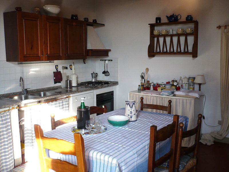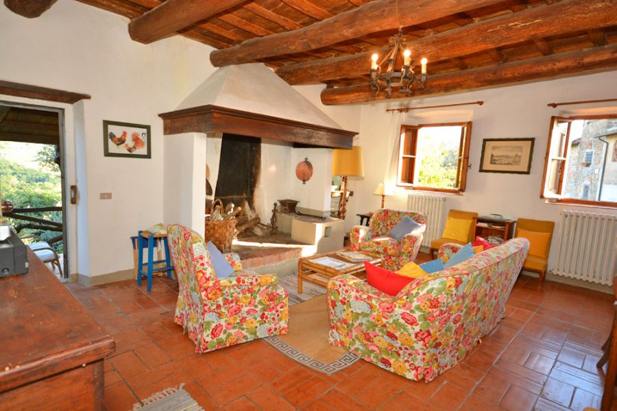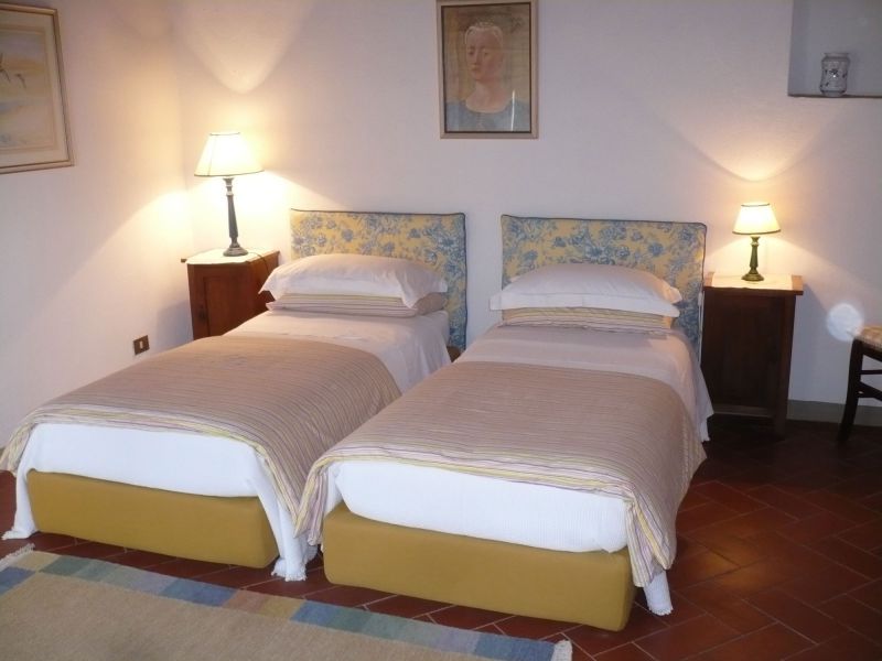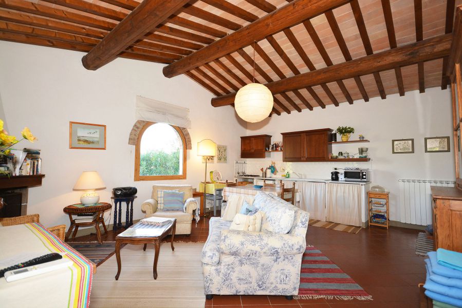 Pecciolino è dotato, invece, di tre camere da letto con tre bagni: la principale ha un letto matrimoniale, la seconda due lettini singoli e la terza un solo lettino; anche in quest'appartamento, nel salotto vi è un caminetto e la cucina, dotata di tutto il necessario, ha la lavatrice, la lavastoviglie, il frigorifero ed il forno. L'aria condizionata è presente al piano superiore, così come ventilatori in tutte le camere e zanzariere alle finestre. Appena davanti all'entrata principale, troverete uno splendido terrazzo esclusivo, dove trascorrere piacevoli momenti in compagnia, magari con un buon bicchiere di Chianti, ed organizzare gustosi pranzi e cene in tipico stile toscano.